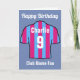Anpassa den här klubbens skjortfödelsekort med namn, nummer och namn i klubben för fotboll. Claret och Blue. Grattis på födelsedagen-fotbollen fläkt. Kort till en fotbollssupporter.