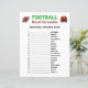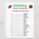 ⭐️ vad det är: Fotboll Ord Scramble Game är ett party-spel. Obetänkligt för ord om fotbollen. De mest korrekta och de snabbaste vinner! Fotbollsspelets svar på nyckel: 1. BAKGRUND, 2. FÖRSVAR, 3. PISTOL, 4. KORNERBACK, 5. BLITZ 6. 7. KICKOFF 8. HUDDLE 9. FOOTBALL, 10. TOUCHDOWN 11. KVARTERBACK, 12. BLOCKERING, 13. HANDOFF, 14. PUNT, 15. TOPPEN BOWL, 16. GRIDIRON 17. TACKLE, 18. LINEMAN.