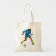 En fotbollsspelare i blå kickar i boll. Den här designen ser ut att vara verkligen på den här Tote Bag