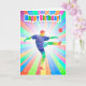 Ett lysande födelsedagskort för din älskade, med fotbollsspelare/fotbollsspelare och mycket ljusa färger, modernt och snyggt med abstrakt.