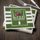 Grönt och vit amerikansk fotboll: sergeant Party napkins med rand, fält, helmet och boll. Anpassa det till namn.