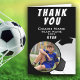 Svart och vit Fotbollstränare Fotboll Foto Tackkort. Fotboll tack tränare kort med ett foto i oval ram, tränarens namn, lagets namn, år, spelarens namn. Personligt foto tack kort - lägg till ditt foto i mallen. Bra tack kort för fotbollslagets tränare!