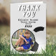 Grå Fotbollstränare Fotbollboll Foto Tacksamhetskort. Fotboll tack coach kort med ett foto i oval ram, tränarens namn, lagets namn, år, spelarens namn. Personligt foto tack kort - lägg till ditt foto i mallen. Bra tack-kort för fotbollslagets tränare!