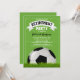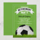 Fotbollstematiserade pensionsfestinbjudningar med en grön fotbollsplan som bakgrund, en fotboll och en modern festmall som är lätt att anpassa.