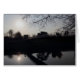 Ett foto av en gångbro över en flod som togs mot den sena eftermiddagen Sol och ljusa himlar med silhuetter av människor som går över bron och sol som reflekteras i vatten. Tagen i Bute Park, Cardiff, Wales, UK