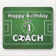 Önskar en väldigt Grattis på födelsedagen till din fotbollscoach med denna underbara gåva, souvenir och gåva i grönt, vitt och svart färg. Ett boll som var med i ord-bussen med ert budskap, allt på en fullt av grönt gräs i fält.