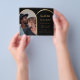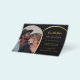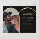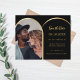Observera att det här Spara datumet är pappert och mycket tunt. Kuvert ingår inte. Om du vill ha tjockare Spara datumkort (samma design) kan du besöka vår butik. Ett foto Spara datumet för bröllop. På framsidan: Lägg till ett eget storlekt foto för lodrät. En faux guld fotoarch ram. En klassisk svart bakgrund, gyllene text. Anpassa och lägg till namn och datum.