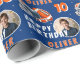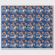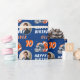 Fotboll Boll Helmet Tecknad Foto Birthday Wrapping Papper. Roligt och modernt byte av fotbollsgåva. Med fet tecknad illustrerar du en fotboll och hjälm i orange och blått. Lägg till foto, namn och ålder.