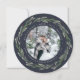 Elegantens helgdag-fotokort i en unik rund form har ett favoritfoto på en rik marin blå bakgrund, omgiven av en krans av rikens grönt-blad och röda vinterbär. Anpassa med en Julhälsningar anpassningsbar (visas med "ha dig själv en liten jul"), namn eller familj namn och året.