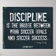 Den här motiverande fotbollsspelaren poster ett inspirerande fotbollscitat över lyckade och lyckade facklade denim. Fotbollsspelarnas motiverande citat, tränare och lagens motivation av författaren och designern Felicity Luckey lyder: "Discipline är bron mellan dina fotbollsmål och fotbollens framgång." ~ Felicity Luckey.