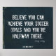 Den här motiverande fotbollsspelaren poster ett inspirerande fotbollscitat över lyckade och lyckade facklade denim. Fotbollsspelarnas motiverande citat för fotbollsspelare, tränare och lagmotivation av författaren och designern Felicity Luckey lyder: "Tro att du kan uppnå dina fotbollsmål och du är halvvägs dit." ~ Felicity Luckey