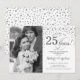 Inbjudan till 25-årsjubileum med foto. Elegant design i silver och vitt med skrivstil och diamantkonfetti. Kan anpassas för alla år av äktenskap. Skål för 25 år!