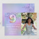 Foto 9:e födelsedagsfest inbjudan lila rosa glitter droppar 9:e födelsedagsfest inbjudan för en 9-årig flicka med moderna skript- och roligt-folier.