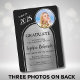 I Studenten-meddelandet i elegant finns en dubbla med svart text mot en borstad bakgrund i silver och ett rum för ett foto av det här speciella evenemangets heder. Kortets baksida har plats för ytterligare tre foton. Mycket att anpassa för att passa ditt eget evenemang. Alla designfrågor, skicka bara en chatta eller ett e-postmeddelande till charmdesignstudio@rcn.com så hjälper vi oss gärna. Kontakta oss också om du vill att bakgrunden till färg ska ändras till en skola i färg eller färg.