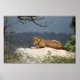 Foto av afrikansk lejon ljugande på sten i naturen poster