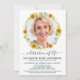 Modern solrosbegravning/Firande av livets inbjudan. Dessa sympatiinbjudningar till begravningen har ett foto i en solros och blommigtens andningsdesign. Anpassa den här firande i livets begravningsinbjudan med dina kära foton, namn & data, händelseinformation. COPYRIGHT © 2021 Judy Burrows, Black Hund Art - Med alla Höger reserverade. Fotoinbjudan till Blommigten firande av livets solrosblomma