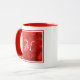 Det här vackra mugg har ett foto av ett rött geranium tillsammans med en finare-inledning.