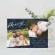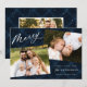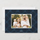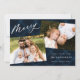 Elegantens fotokort med helgdag "Merry" i ett modernt, vitt kalligrafiskt skript på en målad marin blå plaid-bakgrund. Anpassa fronten genom att lägga till två av dina favoritfoton, hälsning, namn och året. Julkortet återgår till visningen med ett extra foto med en liten bakgrund.