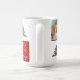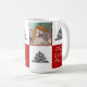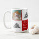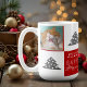 Cute Cat Pet Typography Julgran Photo Mugg. Röd och vit bakgrund med snöflingor och ett enkelt Julgran. White Merry, Lycklig, Jolly typography. Designen har ett foto av en anpassningsbar av en katt - lägg i din favoritkatt eller något annat foto av ett sällskapsdjur i mallen och gör din personliga julklapp till en unik.