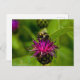 Detta är ett närliggande foto av en vacker, lila blomma, och den har en honungsbi på sitt centrum.
