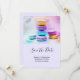 Spara datumkortet med ett utsökt foto med en stapel av färgstarka makaroner.