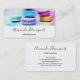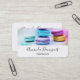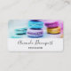Affärskort med ett utsökt foto med en stapel av färgstarka makaroner.