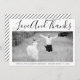 Foto på fetstil i Bröllop Tack med texten "Kärlek och tack". På baksidan finns ett diagonalt mönster med rastrerat, svart och vitt rand och ditt foto.