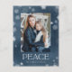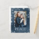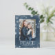 Impress alla på din julkortslista med ett helgdag-vykort för elegant. Det unika vykortet för jul visningar ditt favoritfamiljefoto på framsidan med ett gräns-vitt snöflingor mot en marin vattenfärgsbakgrund. "Fred" visas i ett modernt serif-teckensnitt i trendiget med namnet eller anpassningsbarna som visas nedan. Baksidan av vykortet för helgdag innehåller din returadress, ytterligare ett foto och rymmer ditt anpassningsbar-meddelande. Utformningen koordinerar med vår Frosted Peace-julkortsamling.