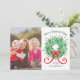 Skicka varm jul-önskemål den här julhelgen med vårt platta kort för julkransar. Den lämnat designen har ett foto från din familj och i högerna står det "Varm jul Önskemål" ovanför den konstnärliga julandeandan som är dekorerad med grönt löv, röda bär och en röd båge. Under krandeperioden är året och din familj namn för att du ska kunna anpassa dig. Kortets baksida dekoreras med mer löv och bär. Den bästa storleka för foto är 5 tum x 7 tum eller 3,75 tum x 5 tum. Designad av konstnärer ©Tim Coffey och Susan Coffey. Photography © Storytree Studios, Stanford, CA.