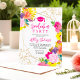 Klass 2024! En chic djärv och livfull vår, sommartid, gult, rosa, vattenfärg för lila blommigt och glitter för guld konetti-typografi studentfest inbjudan med vibranta blommor med bohemisk handmålning, grönt vattenfärg löv grenar med guld geometrisk terarium ram, lägg till ditt foto på baksidan