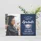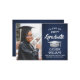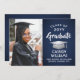 Meddela högskoleexamen eller högskoleexamen och inbjudan familj och vänner att fira med anpassningsbarnas inbjudningar till bilflottan, blått och vitt parti. Bild och formuleringar är enkla att anpassa och färg är lätta att ändra med Zazzle-konstruktionen verktyg. Den här hämtningsbara mallen är konfigurerad som ett kombinationsmeddelande och en gruppinbjudan som kan anpassas med valfri information, t.ex. föräldrars namn, speciella hedersbetygelser, graderingstitel, favoritcitat för inspiration, framtida student-planer eller nya adress. Utformningen har en marin blå bakgrund, granatkarta av typen faux silver, elegant modern kalligrafi, klassisk vintage och ett favoritfoto, t.ex. ett överordnat bild eller en bild från startceremonin. Observera att silver är tryckt grått ombre färg, inte metallfolie. Detta utskrivbara studenten-kort är ett snyggt för att tillkännage en speciell dag i firande. Grattisar till student!
