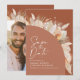 Modern bohemian terracotta pampas gräs snyggt bröllop fotot sparar datuminbjudan.