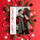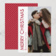 Skapa ditt eget minsta julkort i julhelg. Den här designen har enkel modern typografi God jul, anpassningsbarnas fotobakgrund och röd färg-design.