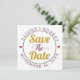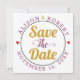 Guld och mulberrys lila-typografi med rött hjärtefoto längst bak i Spara datum meddelande