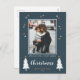 Modern julfoto-Helgdag-vykort med söt träd och stjärnor och texten "Önskar dig mycket god jul". Ord-julen är inställd i ett visematiskt handskrivet skript. Anpassa det här julvykortet med ditt foto och din familj namn.