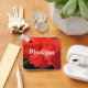 Den här nyckelkedjan har ett foto av en dubbla av ljusstark orange, en hibiscus-blomma och ett vackert finare-skript för att anpassa namn.