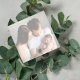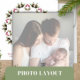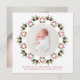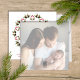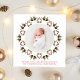 Den här designen har ett fotokort för kalligrafi i god jul med ett god jul, med enkelt rött och grönt, två foto, söt minimalist, en botanisk bladfilm i elegant, en grönsak för hollbär, med rustik vinterkrans, en typografi i snyggten, ett modernt helgdag fotokort