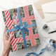 Papper omslutning av rött och vitt stripat bröllop-foto.