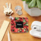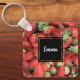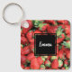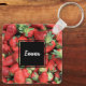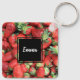 En nyckelring med ett färgfoto med ett gäng lustigt röda jordgubbar.