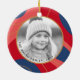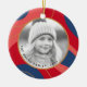 Julprydnad med anpassningsbar, foto och rött, rosa och mörk blått gräns. Anpassade hälsning eller text.