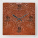 Foto av Rustic Tooled Leather-look & CowboyBoots Fyrkantig Klocka