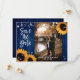 Foto av Rustic Wood Navy Blue Solros Bröllop Spara Datumet
