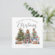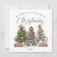 Illustration av ett träd-stumpmejerihus som dekoreras till jul med två träd, ljus och lantern. Texten säger: "Vill du ha en god jul" Anpassa baksidan med ditt foto.