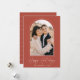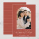Modern helgdag-kort med lodräts foto inramat av en prickad båge med rostig färgad. "Glad helg" visas i trendigets vita skript. Anpassa kortets framsida genom att lägga till familjens namn och året. Kortet återgår till visningen med en vit prickad linje mönster.