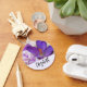 En nyckelring med ett underbart foto av en mörk lila-krokset inuti ett glas burk. Det finns en lätt blommar för lila i bakgrunden.