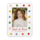 Cute helgdag-fotomagnet med lodräts foto omgivet av färgstarka gummidroppar. Frasen "Sweet & Merry" visas i den röda penselskripten med ditt namn och året som visas nedan. Fotopulmagnet är perfekt för att visa ditt barns foto eller ett sött foto av ditt sällskapsdjur!