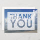 Denna djärva och mångsidiga design har en fotobakgrund som du kan ändra till din egen bild om du vill. Bilden jag använde är av stranden med stilla vågor under en blå himmel fylld med feta vita ludna moln. Ovanpå fotografiet har jag placerat en genomskinlig rektangel med "TACK" utskuret med en djärv sans-serif-teckensnitt. Baksidan lämnades tom för ditt personliga meddelande.