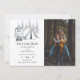 Camping för tält, Lantern och Woodland Sketch sparar datumangivelsen Bröllop i Grått och Vit.