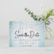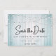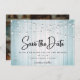 Foto av Teal Blue Rustic Wood String Ljus Spara Datumet