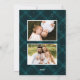 Elegantens helgdag-fotokort med texten "God jul" som visas i ett vitt kalligrafiskt skript överst på designen på en målad tealbakgrund. Anpassa kortets framsida genom att lägga till ditt namn, år och ett foto. Kortet återgår till ytterligare foton i visning 2 på en passande pläterad bakgrund med subtila vita punkter i snö. Kortet för multifoto-julen är en perfekt för att visa dina favoritfoton från familjen!